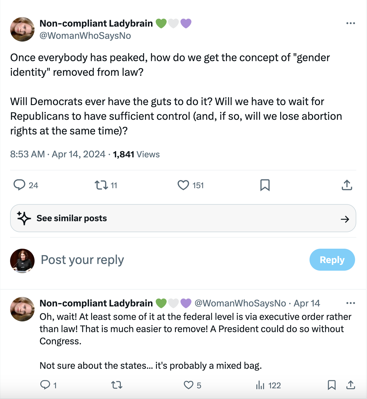 Paid-only content follows. If you are not already a paid subscriber and would like access to content that delves deeper into the movement to protect the sex-based rights of women and girls and to stop the abolition of sex, please consider becoming one today.