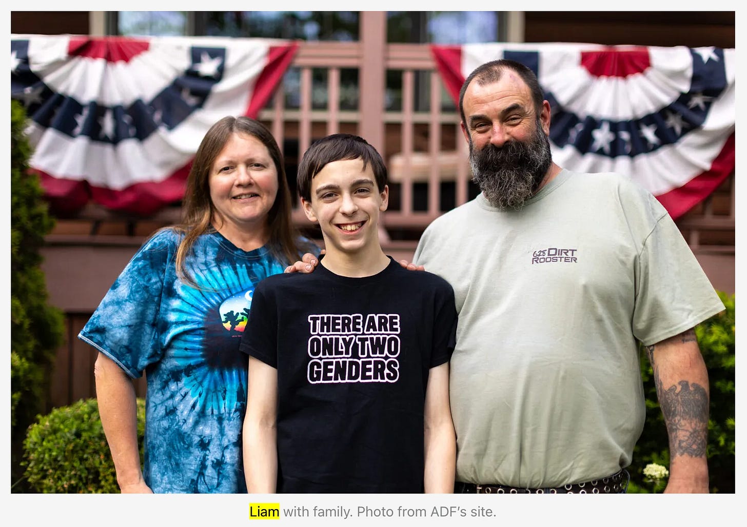 Her post was primarily about a case in which the First Circuit Court of Appeals ruled that a boy named Liam had no First Amendment right to wear a t-shirt to school that read, “THERE ARE ONLY TWO GENDERS.”