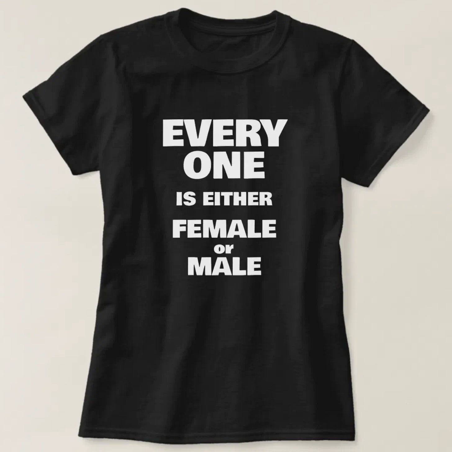 Even more recently, she noted an article in Mother Jones, in which I’m quoted as saying “Everyone is either female or male; everything else is a lie.” So, naturally, she made a t-shirt about that too.
